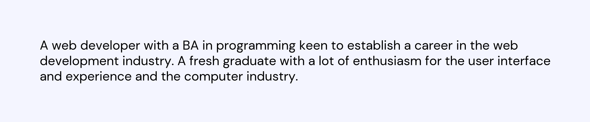 The above example shows the candidate’s education and interest in the area. Still, it won’t convince recruiters due to not mentioning web development skills and experience.