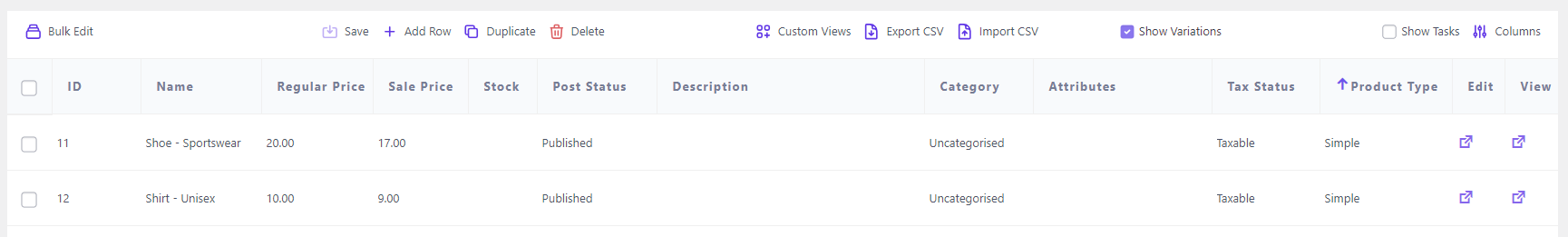 Upgrading to the Pro plan gives you full control over all WordPress custom post types on top of WordPress product types. You can create custom dashboard views based on user-role restrictions. The Pro version also includes advanced bulk editing features and email and call support.