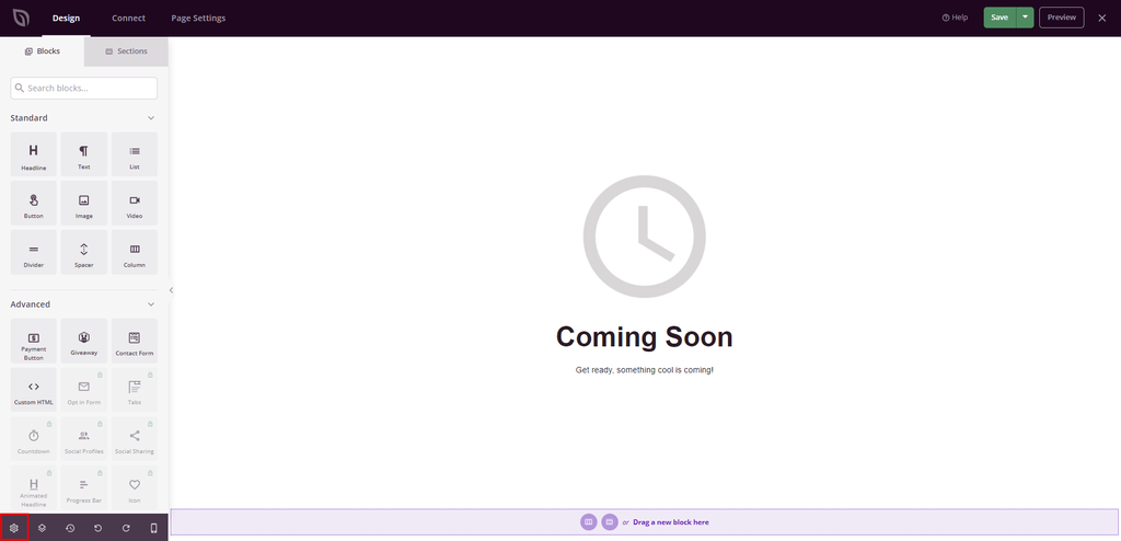 - Go to the editor’s left sidebar and select the gear icon to open Global Settings.