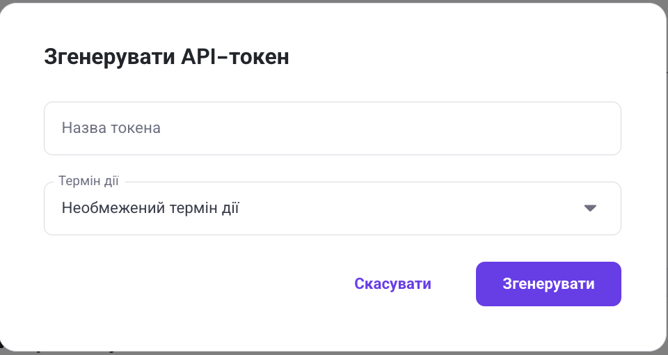 Примітка. Ваш API-токен не буде відображатися після оновлення сторінки з міркувань безпеки.