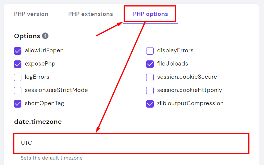 Хоча глобальну конфігурацію часу на Вашому сервері змінити неможливо, Ви можете встановити часовий пояс для свого сайту за допомогою hPanel або функції PHP: