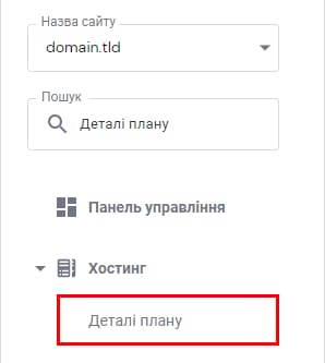 Ми пропонуємо різні варіанти розташування серверів. Придбавши хостинг, Ви можете вибрати місце розташування сервера під час налаштування замовлення. Якщо Ваш хостинг вже активовано, Ви можете легко змінити місце розташування сервера. Перейдіть на сторінку “Сайти”, натисніть“Керувати” та знайдіть у бічній панелі “Деталі тарифу”: