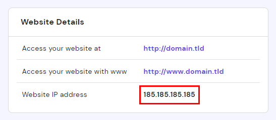 185.185.185.185 domain.tldПереконайтеся, що 185.185.185.185 замінено на IP-адресу Вашого хостинг-тарифу, а domain.tld – на Ваше доменне ім’я.