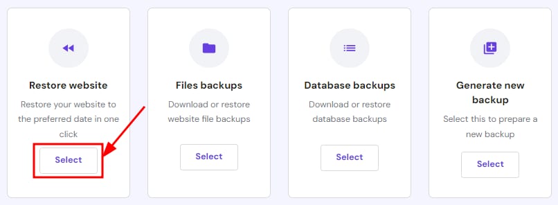 Перейшовши до розділу “Бекапи”, виберіть опцію “Відновити сайт”: