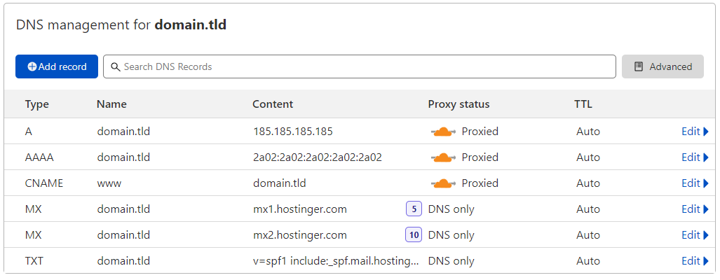 DNS-записи за замовчуванням Hostinger: