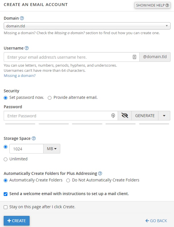 Створення нового поштового акаунта та керування вже створеними обліковими записами в cPanel