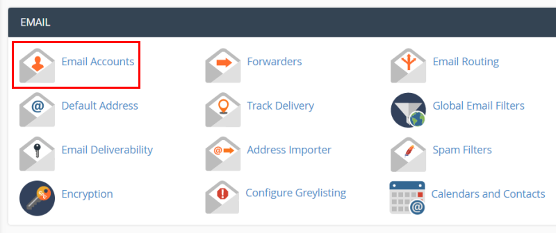 Вашими обліковими записами електронної пошти можна легко керувати за допомогою розділу “Пошта” в панелі управління. Відкрийте cPanel і натисніть на розділ Поштові облікові записи: