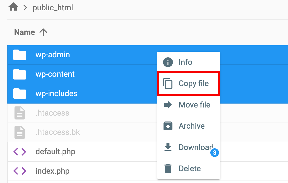 cd path/to/filesНаприклад, якщо Ваші файли знаходяться в папці public_html/new/version1, то команда має бути cd new/version1.