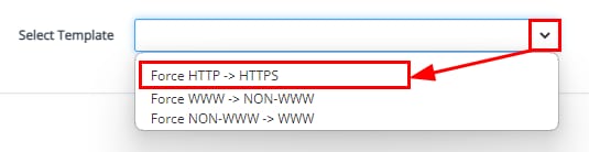 Натисніть на спадний список і виберіть “Переспрямувати HTTP → HTTPS”: