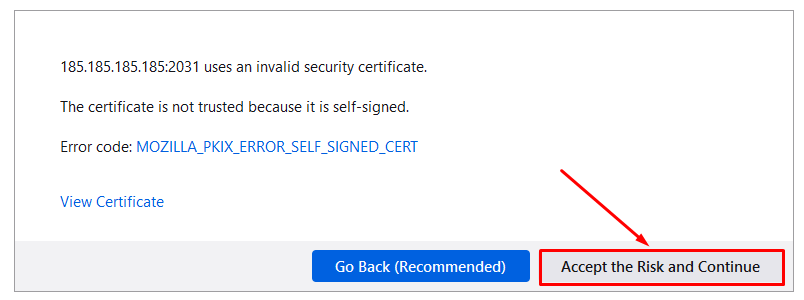 Під повідомленням про помилку натисніть “Advanced” і виберіть “Proceed to [your-vps-ip] (unsafe)”. Якщо кнопка “Proceed” не з’явиться: