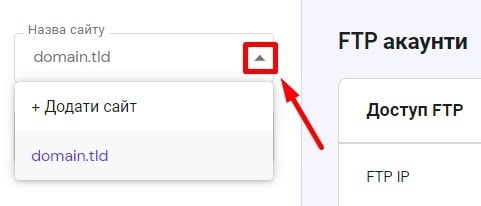 Виберіть зі списку домен, для якого потрібно змінити пароль FTP: