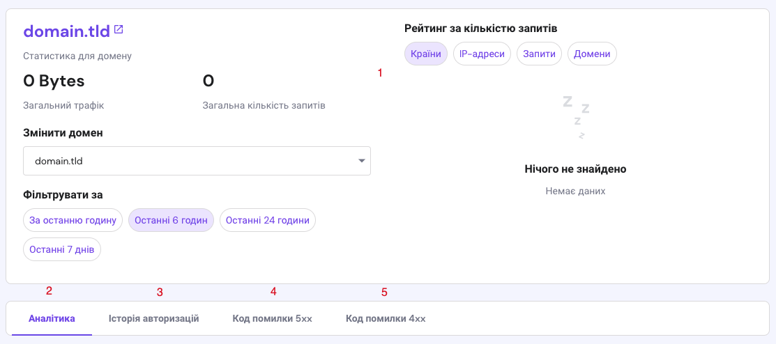 кнопка “Змінити домен” – Ви можете переглянути статистику іншого домену;
