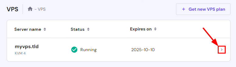 Щоб знайти дані SSH, потрібно перейти до панелі управління VPS і вибрати сервер, до якого Ви хочете підключитися: