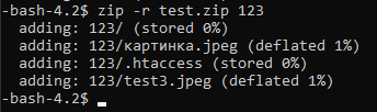 Створення архіву триватиме певний час. Після завершення в новому рядку Ви побачите: