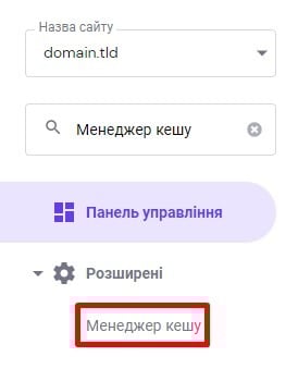 Щоб увімкнути функцію кешування, просто перейдіть у Хостинг → Керувати та знайдіть Менеджер кешу у лівій бічній панелі: