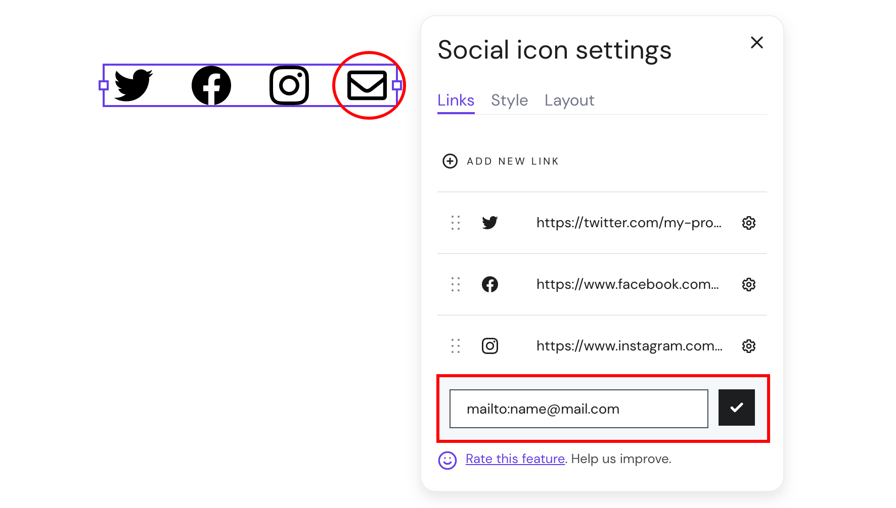 Щоб додати піктограму пошти, просто введіть свою адресу електронної пошти:
