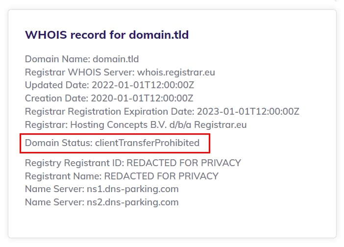Домен заблоковано, щоб запобігти несанкціонованому перенесенню домену |