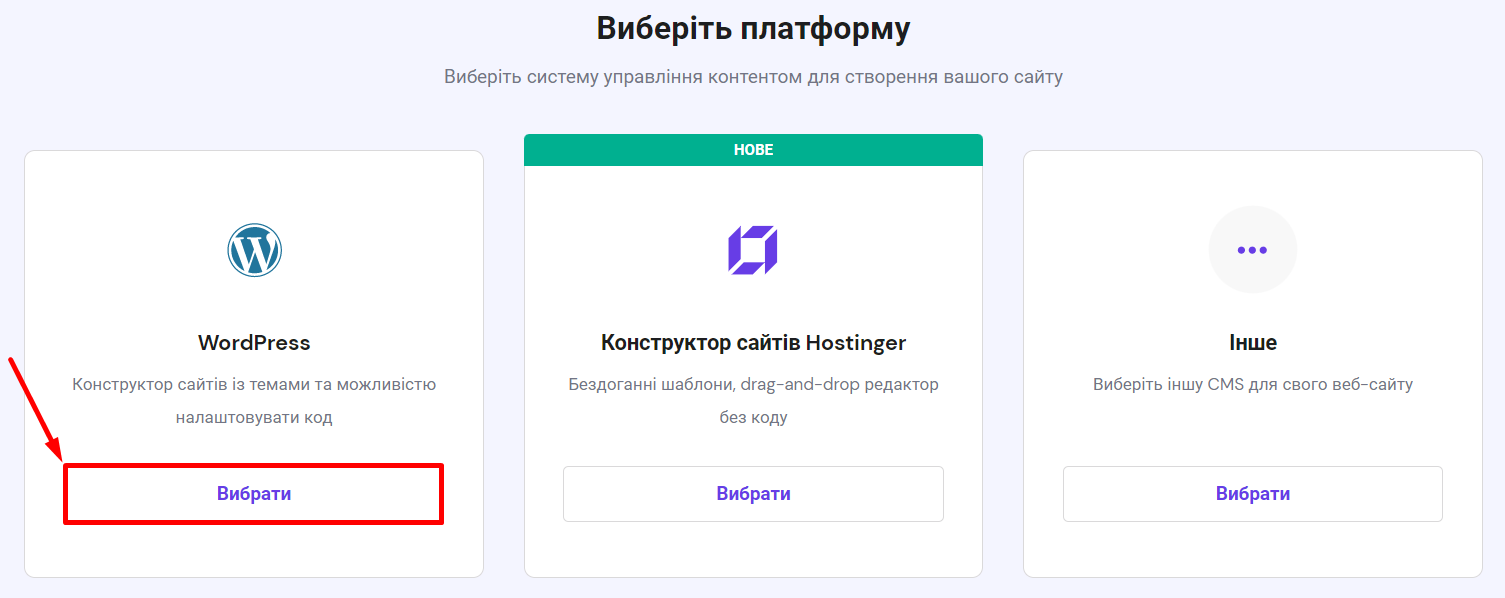 Якщо Ви виберете новий домен, Ви перейдете до процесу покупки