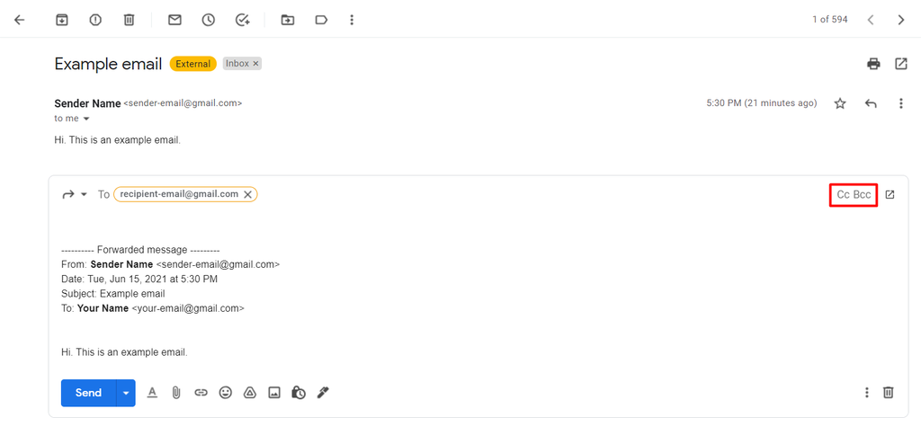 Both To and Cc recipients can see the list of email addresses attached to the email you forward. Meanwhile, the list is not visible to Bcc recipients.