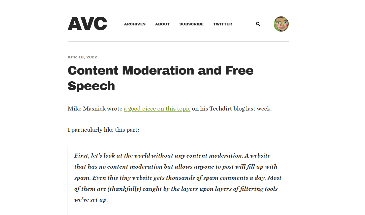 The homepage of A VC, an entrepreneurship blog that focuses on investment and blockchain