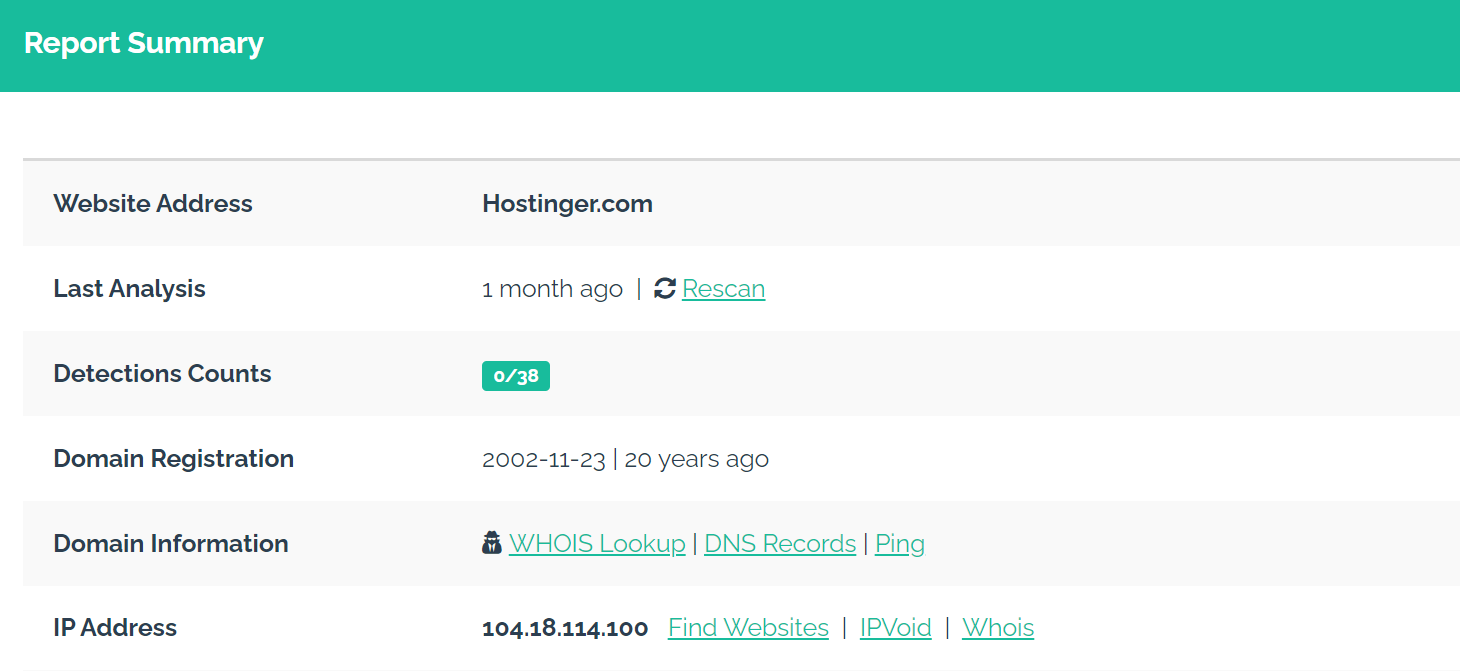 Website safety report in URLVoid