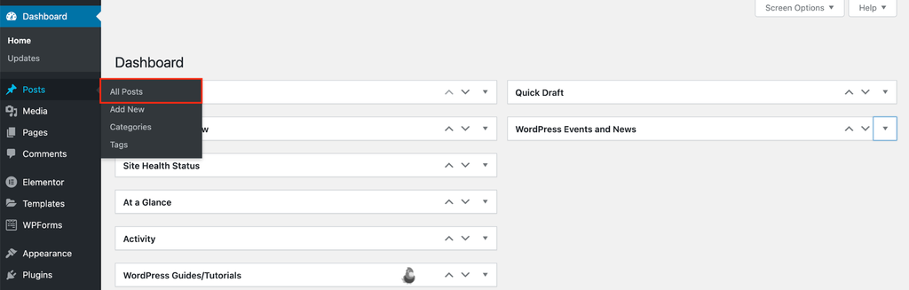 1. Navigate to Posts > All Posts. You’ll see a table containing all the posts you have published.