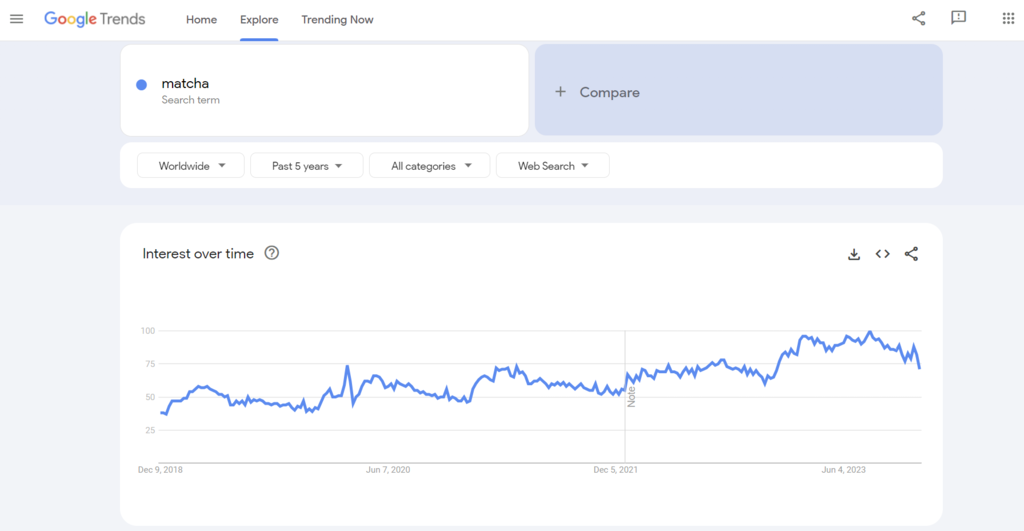 According to Google Trends, searches for “matcha” have experienced a gradual upward trend in the recent years.