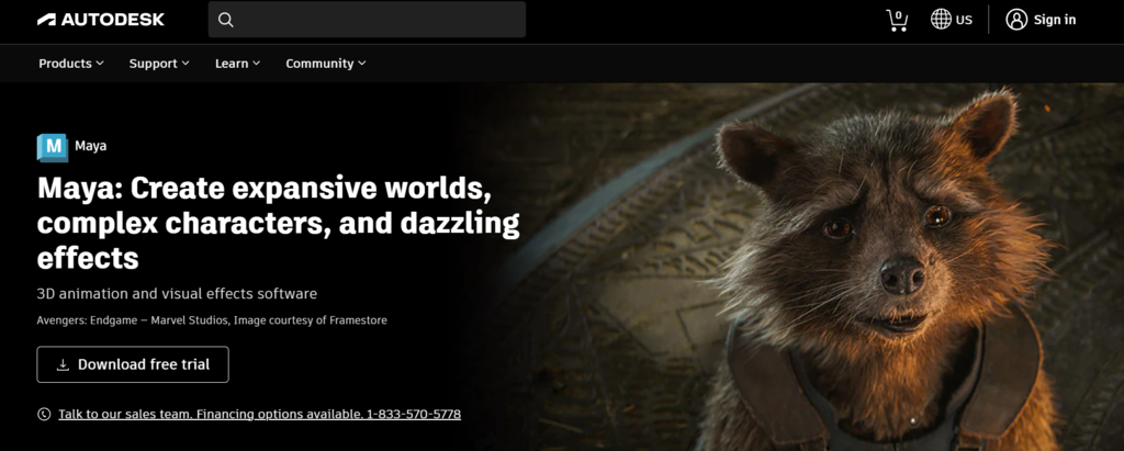 Maya product page